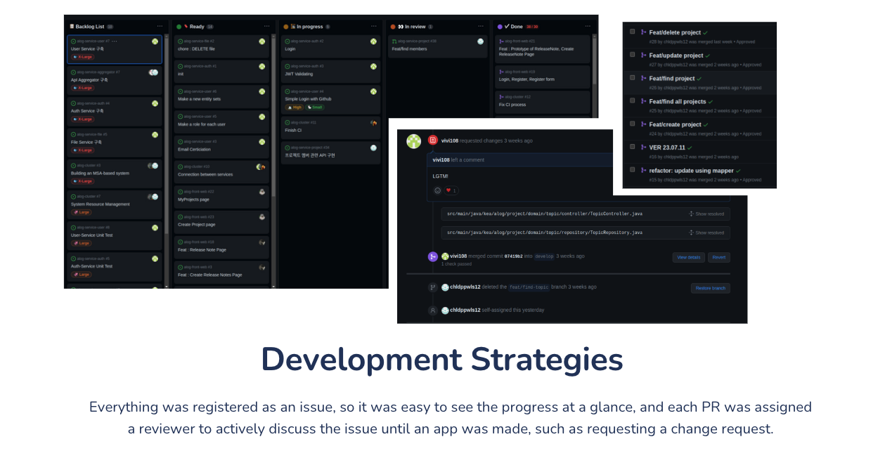 - All issues were registered to have a clear view of the progress, and each pull request had assigned reviewers, allowing active discussion on the issues before approval.